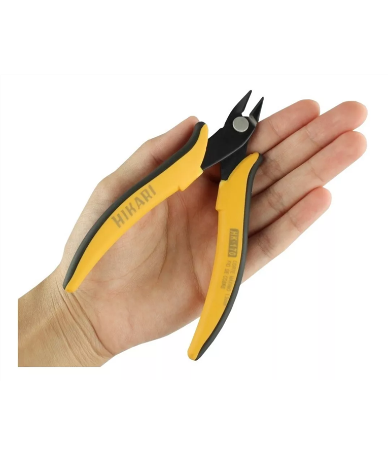 Alicate de Corte Rente Hikari 132mm - HK 170 O Alicate de Corte Rente Hikari é uma ferramenta manual utilizada em diversos tipos de trabalhos, seja elétrico, eletrônico, artesanal, e perfeito para manutenções do dia a dia. - O Alicate de Corte Rente Hikari possui dimensões compactas, seu corpo e suas lâminas são forjadas em aço SK-5. Conta com lâminas de corte em diagonal e afiação especial, que garantem agilidade e precisão. Sua utilização é variada, pode ser utilizado de diversas maneiras! - Possui cabo com revestimento antiestático (plástico borracha), o qual garante ao usuário do Alicate de Corte Rente Hikari proteção contra eventuais descargas elétricas (choque elétrico) e danos durante a atividade exercida. Além disto, este alicate conta com um sistema de pressão, que facilita a abertura do mesmo, proporcionando um manuseio mais fácil e suave. - Este Alicate de Corte Rente Hikari é uma ferramenta leve, compacta e fácil de manusear que corta fios finos, arames finos e também realiza rebarbas em plástico, se encaixando perfeitamente tanto na sua maleta de ferramentas quanto na sua bancada de trabalho. CARACTERÍSTICAS: - Alicate de Corte Rente Hikari; - Corte rente de precisão; - Forjado em aço SK-5; - Sistema de pressão para manuseio suave; - Afiação diferenciada das lâminas de corte; - Utilizado para diversos trabalhos de precisão; - Compacto, leve e fácil de manusear. - Marca: Hikari; - Modelo: HK-170;