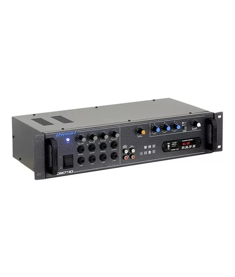 Os cabeçotes multiuso ONEAL mod. Om740 e Om2170 foram projetados dentro do que há de mais rigoroso e atual em componentes, medições e testes em áudio. Possuem um sistema inédito de proteção térmica ( - Electronic ThermoProtection). Enquanto a maioria dos aparelhos utiliza relês e termostatos mecânicos, nossos aparelhos possuem este controle eletronicamente. Este sistema trabalha com menos de 5% de tolerância de erros, já os sistemas convencionais operam com uma margem de tolerância aproximada de 30%. Possui sistema de ventilação inteligente ( Inteligent Cooler System), onde o sistema de turbo ventilação só é acionado com o aumento da temperatura em seu turbo dissipador que é super dimensionado, podendo atuar em locais de trabalho com temperatura ambiente elevadíssima. Proteção contra curto na saída ( - Short Circuit Protection). Os modelos Om740 e Om2170 possuem os seguintes recursos: Mp3/WMA Player com porta USB, entrada para cartão SD e Bluetooth 4 canais de entrada (Mic) para microfone (Balanceadas) ou instrumentos de corda (violão, guitarra e contrabaixo), o aparelho Om740 possui 4 entradas de linha (Line) próprias para sinais de alto nível (teclados, instrumentos de corda com pedais de efeito) todas com controle de volume individual, o aparelho Om2170 possui 4 entradas Switch para efeito Ding-Dong com chave Ding-Dong; 1 entrada RCA CD/DVD/Mp3-4 Player; saída para gravação RCA (Rec Out), 3 controles de equalizações, graves (Low), médios (Mid), agudos (High), tecla Turbo Loud, saída de linha (Line out), volume geral (Master volume) e chaves seletoras 4 Ohms, 70V ou 210V (apenas no modelo Om2170). Estes aparelhos têm resposta plana desde 10Hz à 70KHz, com níveis extremamente baixos de ruídos e distorção harmônica, proporcionando áudio puro, limpo e de alta fidelidade. Os mesmos foram construídos para atenderem usuários altamente exigentes, podendo ser usados para sonorizações de pequeno até grande porte como bares, igrejas, cinemas, teatros e bandas, com o melhor fator custo-benefício do mercado.