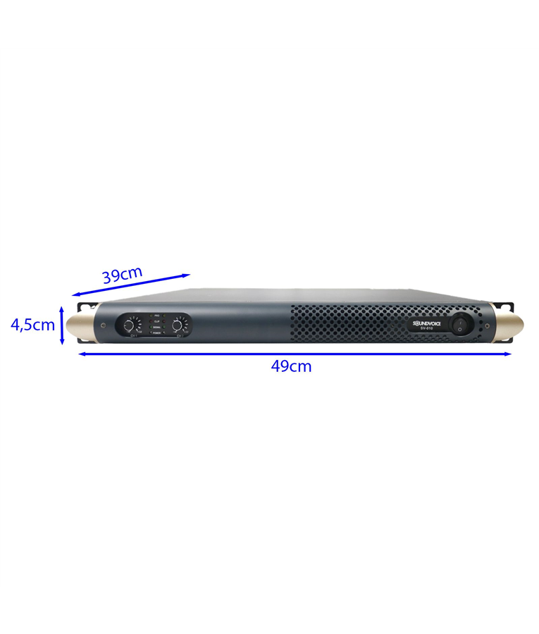 O amplificador de potência de áudio Soundvoice 1500W SV010 PRO 220v é um amplificador de áudio PDM de nova geração com a proposta técnica de consumo de energia mais baixo. O amplificador oferece 1500W de potência, e é divido em 750W RMS por canal de saída Projetado em um corpo slim, sólido e de tamanho 1U.