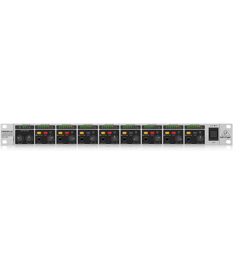 - 8 seções estéreo de amplificação de alta potência independentes em um único espaço de rack;