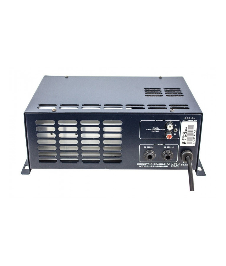 O amplificador de potência Oneal OP 750 foi projetado dentro do que há de mais rigoroso e atual em componentes, medições e testes em áudio. Seu dissipador é super dimensionado, podendo atuar em locais de trabalho com temperatura ambiente elevadíssima. Este amplificador foi muito bem dimensionado em seus projetos, podendo assim atingir uma potência maior que a especificada, tem respostas planas desde 10Hz a 70KHz, com níveis extremamente baixos de ruídos e distorção harmônica, proporcionando áudio puro, limpo e de alta fidelidade.