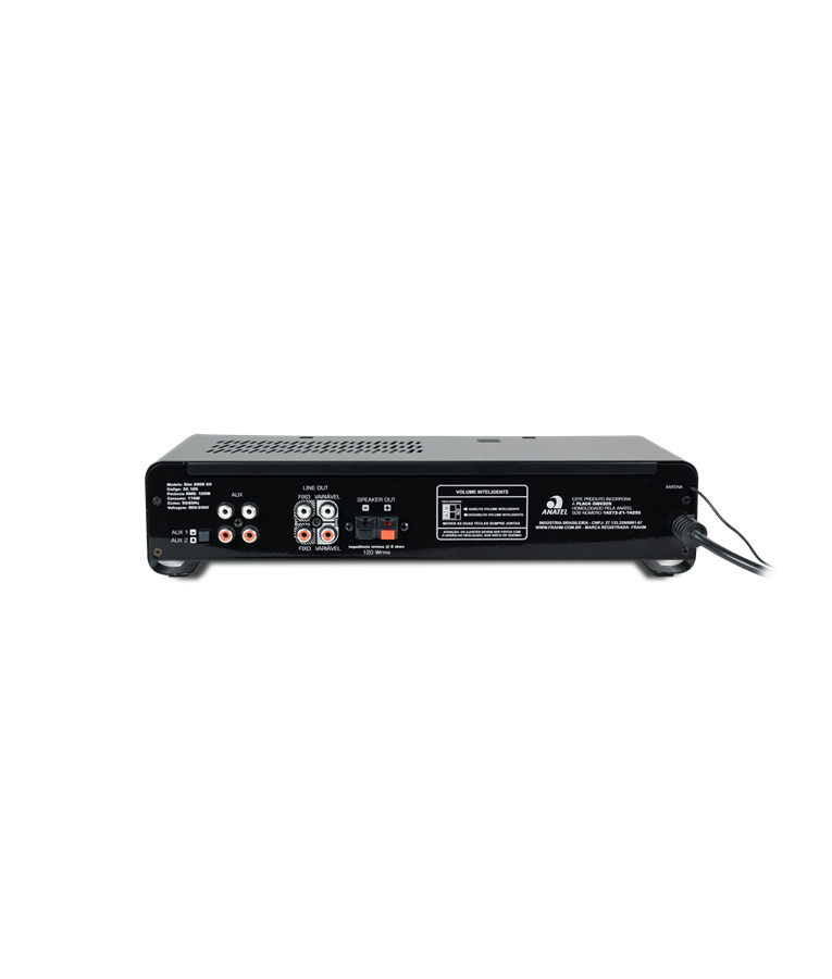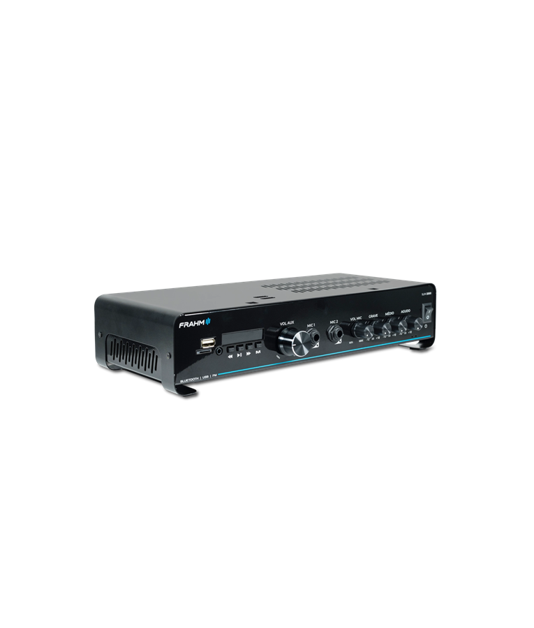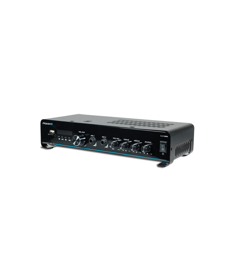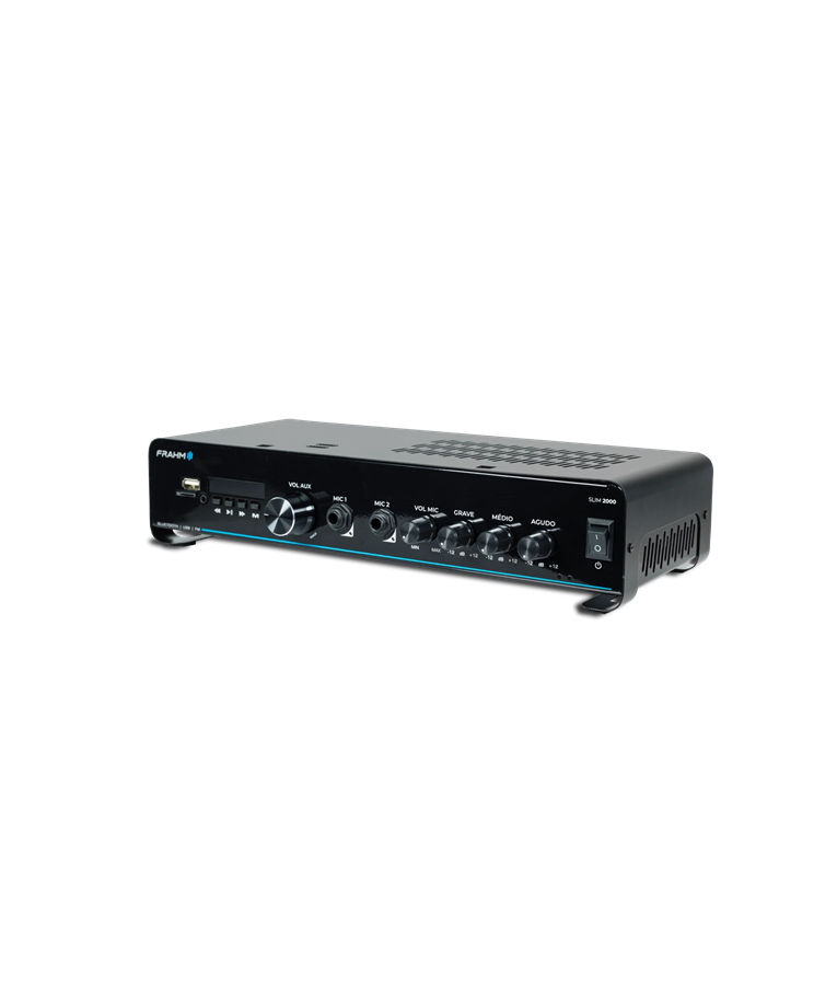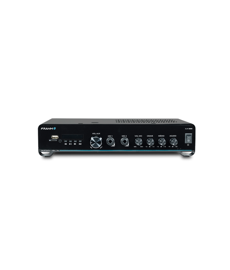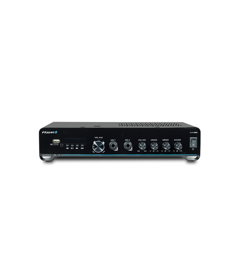 A linha nº1 em amplificador comercias do Brasil, chega em sua quinta geração (G5), trazendo ainda mais tecnologia e um visual único e inovador. Geração que reflete toda a confiabilidade, sem perder sua essência. O amplificador Slim 2000 G5 com 120 Watts RMS de potência. Amplificador que pode sonorizar um ambiente de fácil modo, pois possibilita a instalação de até 4 caixas de 8ohms em paralelo. Indicação de uso: Restaurantes, Conveniências, Farmácias, lojas, clínicas, ambientes corporativos, mercados/supermercados e muitos outros. Benefícios: Visual único e moderno. Facilidade em sua operação. Entrada para conexão de microfone Equalizador Conexão auxiliar via RCA, USB, Bluetooth, P2 e Micro SD. Diferencial 1: Visual único e moderno - Seu visual com linhas curvas, reflete todas a inovação da linha líder em amplificadores. Diferencial 2: Bluetooth 5.0 - Versão que possibilita maior alcance e alta velocidade na transmissão de dados. Diferencial 3: Confiabilidade eletrônica - Em sua quinta versão eletrônica, traz ajustes e estabilidade ao sistema de som. Diferencial 4: Saídas com 2 Ohms - Amplificador que pode sonorizar um ambiente de fácil modo, pois possibilita a instalação de até 4 caixas de 8ohms em paralelo. Diferencial 5: Confiabilidade. A linha número 1º em amplificadores. Diferencial 6: Suporte técnico especializado - Suportes para projetos e para esclarecimento de dúvidas em sua operação e para projetos.