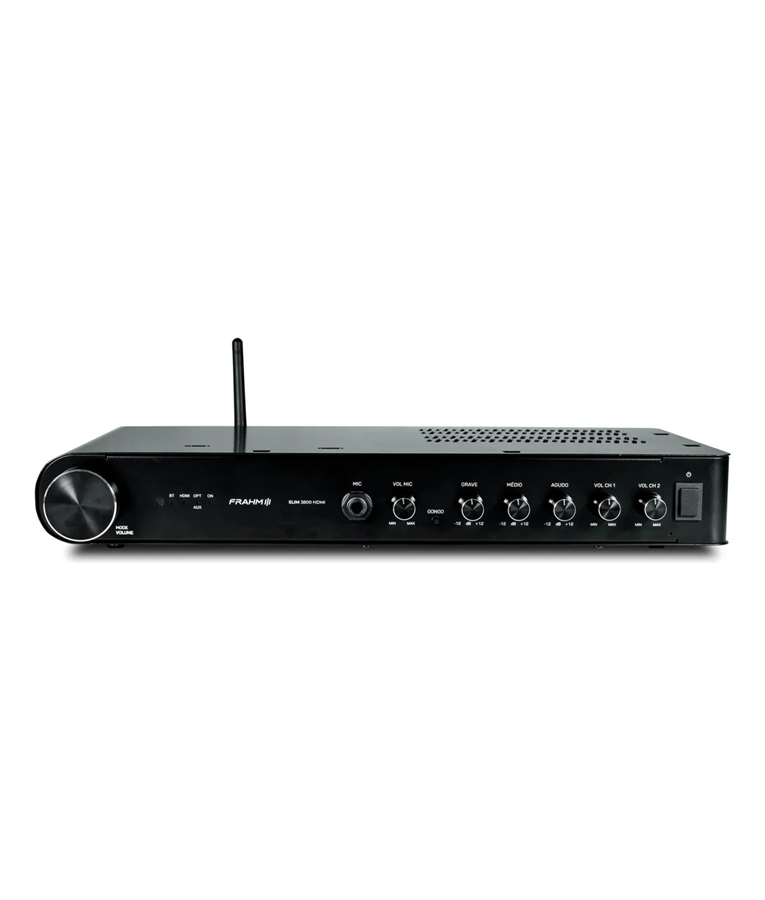 O slim 3800 HDMI é um dos primeiros amplificadores da linha com conexão HDMI, uma das conexões mais modernas para equipamento de áudio. Seus 240 Watts RMS de potência pode sonorizar dois ambientes de fácil modo, pois possibilita a instalação de até 2 caixas de 8ohms em paralelo por canal.