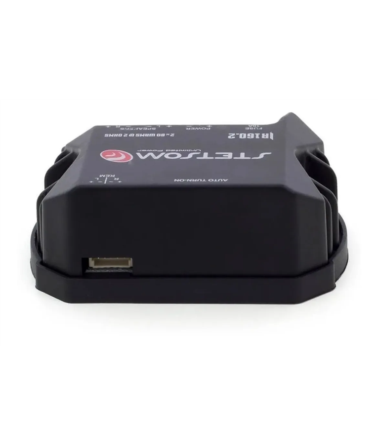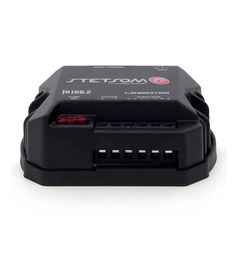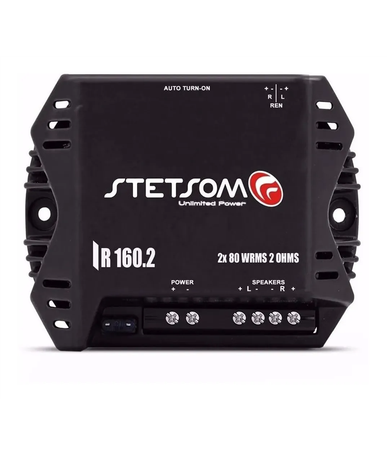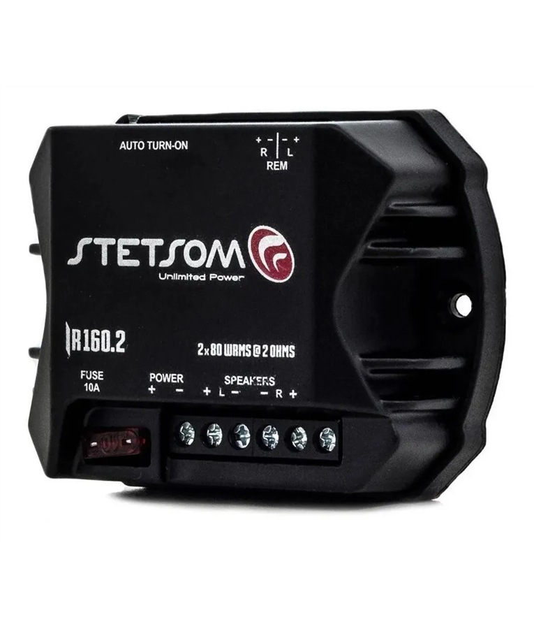- Potência RMS em 2 Ohms 13,8V: 2 x 80W RMS (Stereo)