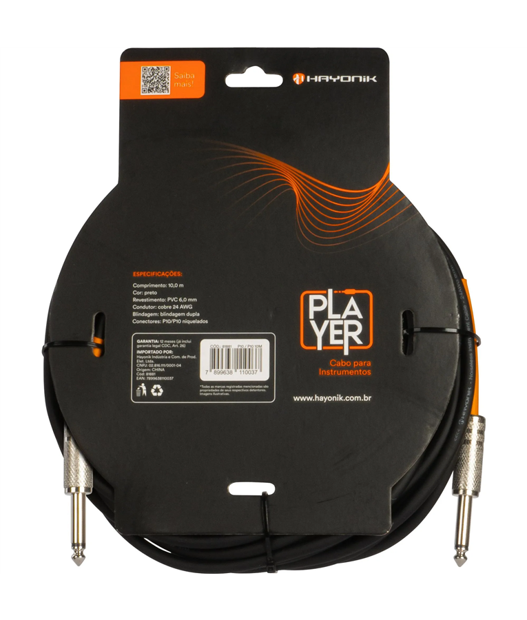 Cabo Áudio Instrumento P10 x P10 (Macho) Hayonik Player 10m