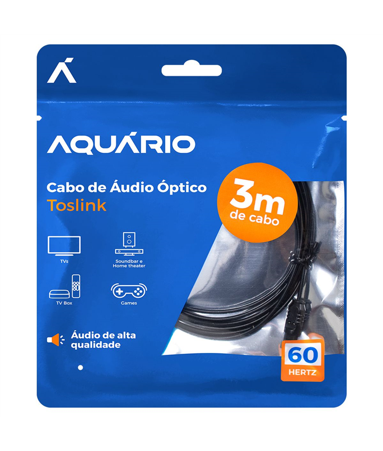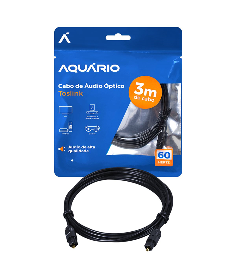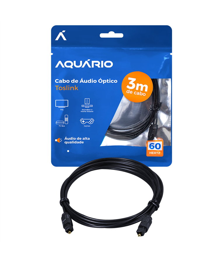 Os Cabos de Áudio Óptico Toslink da Aquário garante alto desempenho para equipamentos de áudio, sem perda de qualidade de som, nem de transferência de sinal. Com modelos de 2 e 3 metros, facilitam sua necessidade de instalação.
