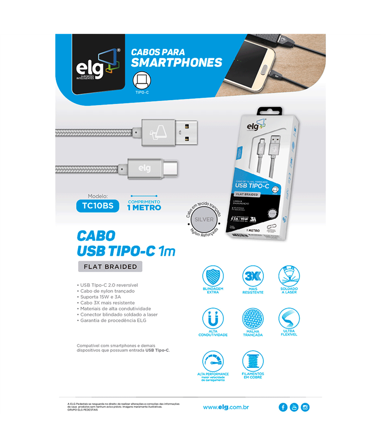 O cabo USB Tipo-C TC10BS foi desenvolvido para ser um produto com personalidade e estilo irreverente para pessoas criativas e alegres e que gostam de estar sempre conectadas. Suas cores marcantes com certeza irão chamar atenção aonde você estiver! Com um design moderno e acabamento de alto padrão, possui cabo reforçado de nylon trançado, para maior durabilidade e conectores em alumínio!