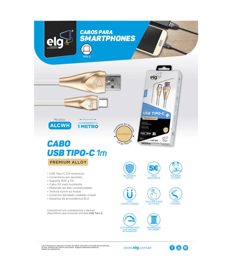 Design Moderno e Acabamento de Alto Padrão: O cabo ALCWH possui um design elegante e um acabamento sofisticado, garantindo não apenas funcionalidade, mas também estilo.