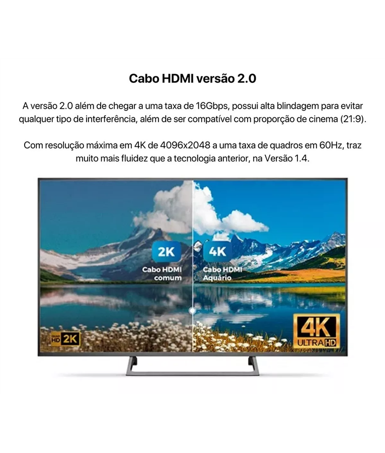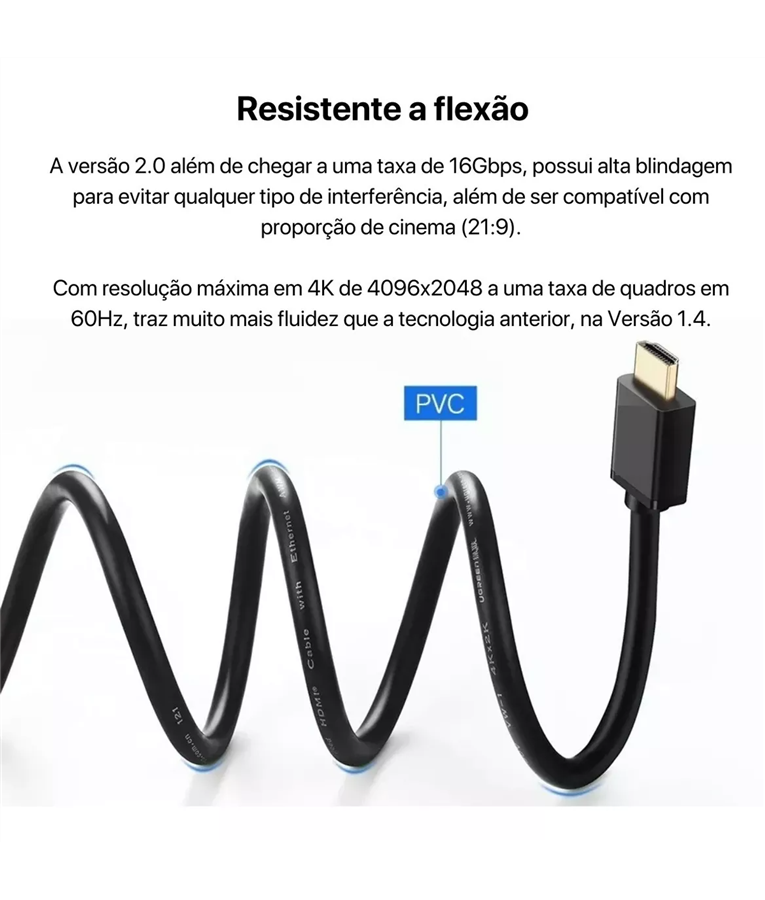 Compatível Hdtv versão 1.0, 1.2, 1.3a, 1.3b cat2, Hight Speed 1.4 e 2.0