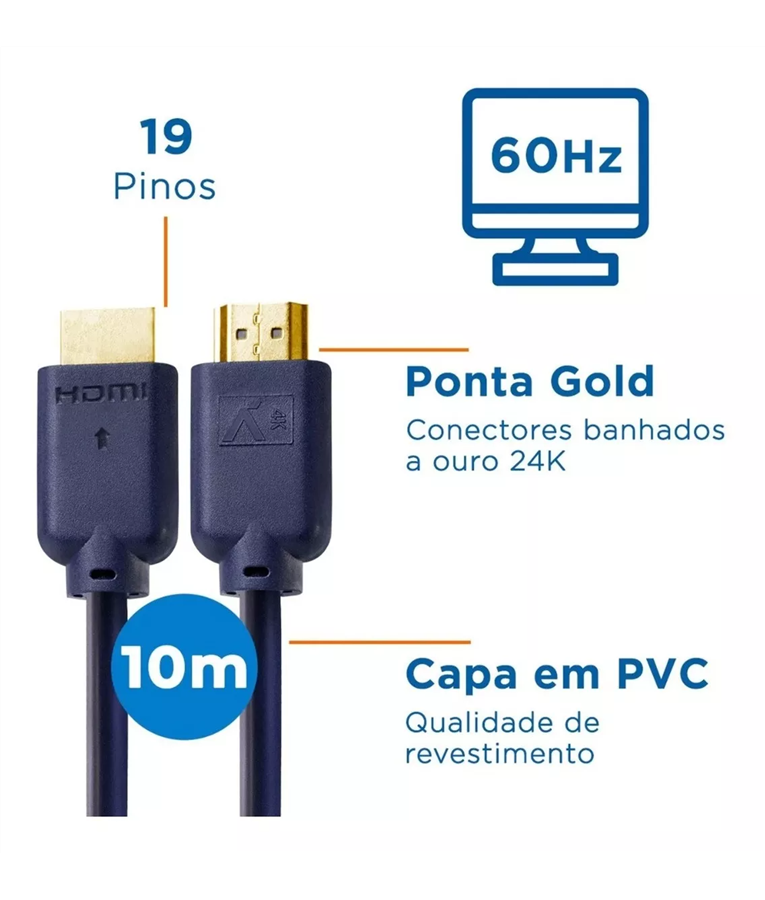 1 Cabo Hdmi 10 metros com superblindagem, condução de alta performance Ultra HD 4k 3d