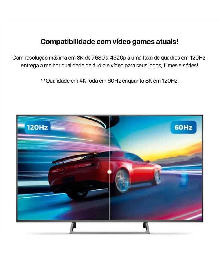 com resolução máxima em 8k de 7680x4320p a uma taxa de quadros em 120hz, entrega a melhor qualidade de áudio e vídeo para seus jogos, filmes e séries!