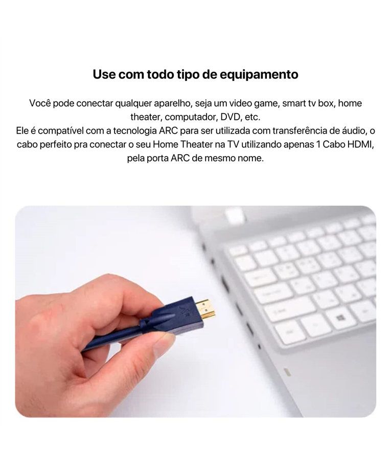 -Possui a tecnologia arc para ser utilizada com transferência de áudio, o cabo perfeito pra conectar o seu home theater na tv utilizando apenas 1 cabo hdmi Pela porta arc de mesmo nome.