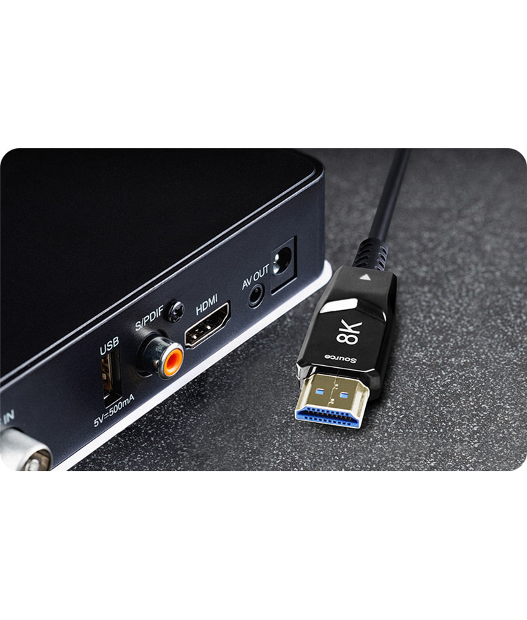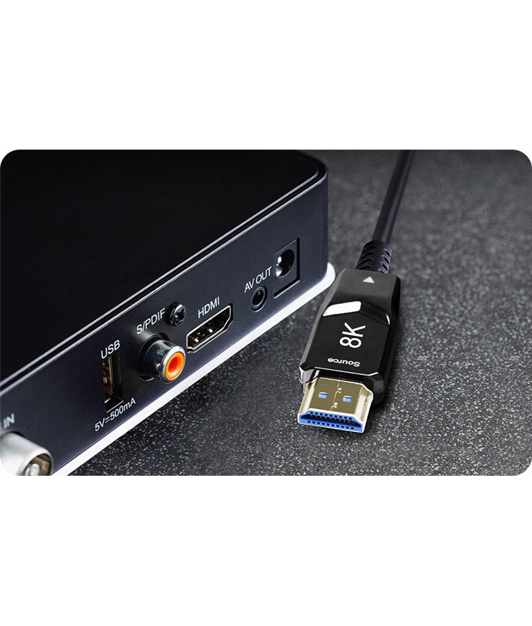 O Cabo HDMI 8K de Fibra Óptica possui resolução compatível com HDR10 e possibilita alta performance para aparelhos que necessitam de alta definição de imagem profissional, com rapidez sem igual na transferência de dados e canal de ethernet.