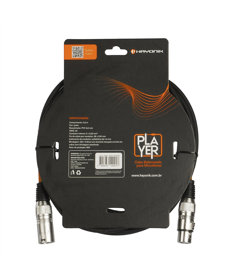 O Cabo Para Microfone Player oferece uma conexão confiável para as necessidades de áudio. Com conectores XLR (macho) e XLR (fêmea), este modelo garante uma transmissão balanceada de qualidade. Já o seu revestimento em PVC de 6,0 mm proporciona durabilidade e flexibilidade para uso contínuo em diversas situações. Assim, o Cabo para Microfone Player é ideal para músicos, vocalistas e profissionais de áudio que buscam um desempenho consistente e confiável.