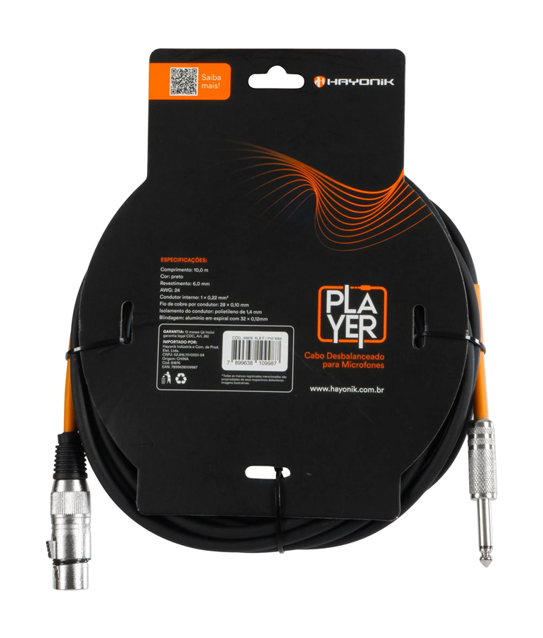 O Cabo Para Microfone Player é o modelo ideal para as necessidades de áudio, apresentando conectores XLR (Fêmea) e P10 (Macho), este cabo para microfone atende especialmente quem necessita de solução para microfone desbalanceado. Com seu revestimento robusto de PVC de 6,0 mm, este cabo proporciona uma transmissão de sinal estável e durável, ideal para uma variedade de aplicações de microfonia.