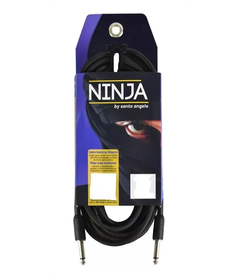 A Linha Ninja da Santo Angelo é uma das melhores opçôes para quem não abre mão da qualidade e transmissão de sinal com mais eficiência, revestimento de maior resistência mecânica e diferentes características de construção que ressaltam o melhor desempenho em média frequência. Para instrumentos musicais e interligação de outros equipamentos. Fabricado com liga de cobre OFHC (Isenta de Oxigênio) e bitola de 0,20mm²/24AWG (E20). Montado com conectores P10 x P10 usinados em latão (CLA) niquelados e blindados com thermocontrátil.