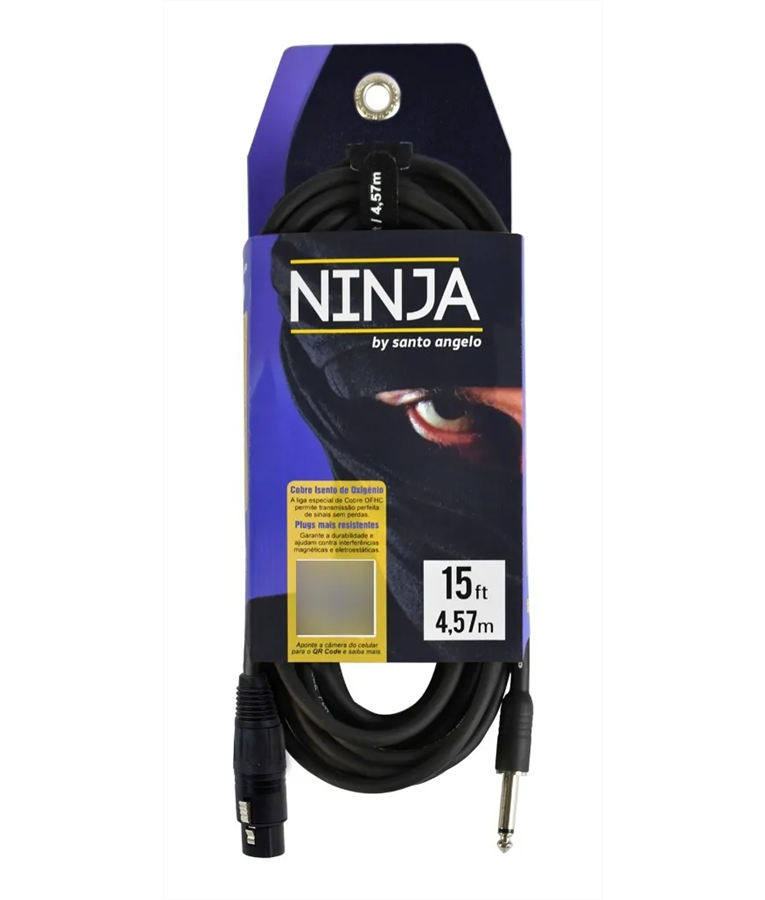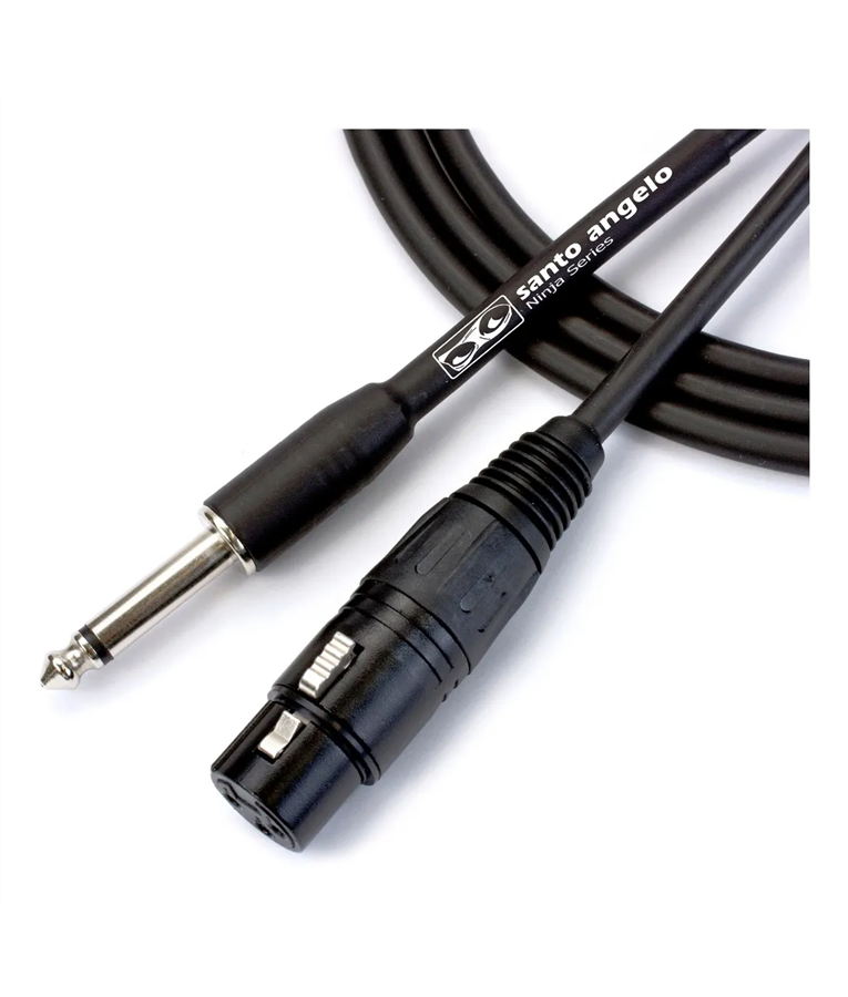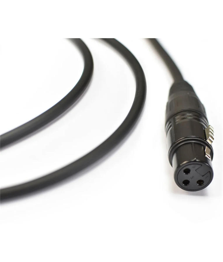 Cabo de microfone de alta impedância. Fabricado com liga de cobre OFHC e bitola de 2 x 0,20mm² / 24AWG (SC20). Montado com conector XLR Fêmea injetado em ZAMAC (liga de alumínio) e conector P10 usinado.