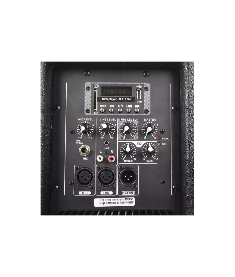 Entrada LINE com conectores XLR, RCA e P2