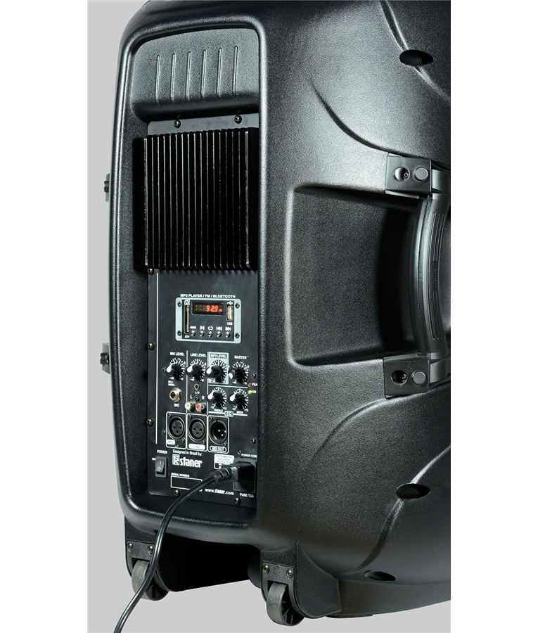 A caixa de som Staner PS 1501 possui a mais alta tecnologia, robusta e com design arrojado que somente a Staner oferece. Sinta-se seguro para realizar eventos de em lugares fechado ou abertos. O Staner PS 1501 oferece um som natural, com grande clareza e precisão, que é uniformemente disperso. Um alto-falante que garante potência e qualidade por igual na reprodução de conteúdos multimídia. Para toda ocasião Desfrutar de um amplo espectro de sons tanto na reprodução de vozes como assim de notas musicais é possível com este alto-falante woofer. Surpreenda-se com o seu excelente desempenho sonoro em filmes, séries e em suas playlist favoritas. Esqueça do amplificador Sendo ativo, você só precisará conectá-lo à fonte de som e o mesmo equipamento ficará encarregado de amplificar e tocar: você ganhará praticidade e espaço, pois também requer menos fiação do que um passivo. É a solução mais conveniente se você quer produzir música em casa ou em um estúdio, e também para DJs. Adequado para o ar livre Use-o onde quiser, este dispositivo é projetado para que você tenha sempre o melhor som, tanto em ambientes internos como externos. 1x Woofer de 15"""""""" 1x Driver de Titânio 200W 2 Bandas de equalização Entrada MIC balanceada com conectores XLR e TRS 1/4"""""""" Entrada LINE com conectores XLR, RCA e P2 Controle de volume MASTER Reproduz arquivos MP3 através de porta USB/SD card Comunicação via B.T. Receptor de FM Leitor USB / SD Card Conector XLR macho para Pre-out Rodízios incorporado ao gabinete para facilidade de transporte Receptáculo de 35 mm já incorporado para montagem em pedestal com sistema de travamento Dimensões (LxAxP): 440x790x360mm 1x Suporte Pedestal(tripé) Peso: 17kg