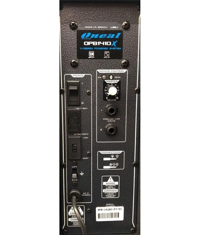 A caixa acústica ONEAL mod. Opb1410X foi projetada dentro do que há de mais rigoroso e atual em componentes, medições e testes em áudio. seus gabinetes foram produzidos em MDF e telas de pintura eletrostática. Elas possuem os seguintes recursos: 2 entradas Line com Jacks P10 1/4? com controle de volume;Proteção contra curto na saída (SCP - Short Circuit Protection), também conta com a função limiter (CLP - Clip Limiter Protection) que protege o aparelho de qualquer excesso de sinal que ele receber, o mesmo atuará instantaneamente, com o attack muito rápido. Este sistema de