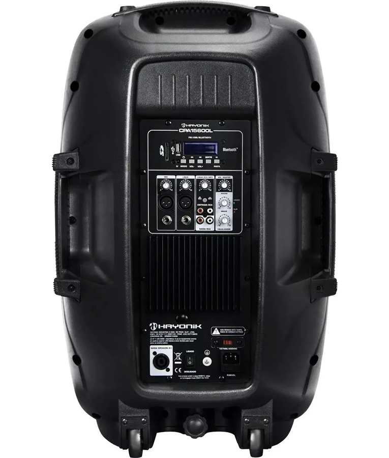 A Caixa Acústica Ativa Hayonik CPA 15600L foi projetada e desenvolvida em laboratórios equipados para te fornecer uma boa qualidade sonora além das conectividades que a Hayonik oferece para você, tais como, entrada de cartão de memória, USB, bluetooth e rádio FM além de 1 entrada de microfone e 1 entrada de linha XLR ou P10.