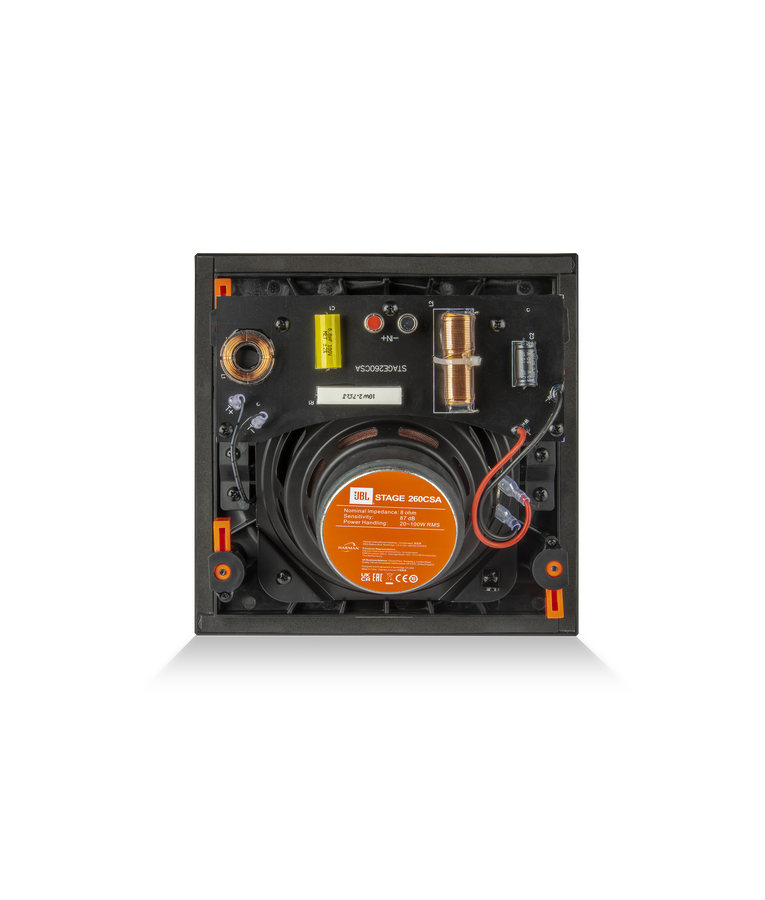 DESCRIÇA:   Stage 260CSA O design angular do Stage 260CSA permite o direcionamento preciso do woofer de cone de policelulose de 6,5"""""""" (165 mm) e do tweeter de cúpula de alumínio de 1"""""""" (25 mm) com guia de onda de lente acústica em direção à área de audição. Uma grade de moldura zero visualmente discreta e fácil instalação permitem que esses alto-falantes sejam ouvidos e não vistos. Elementos incluindo defletores com suavização acústica e tweeters de lentes acústicas foram incorporados ao design para garantir que o som seja claro e preciso.   ESPECIFICAÇÃOES GERAIS:   Transdutor de alta frequência: Domo de alumínio de 1"""""""" (25 mm) com lente acústica   Transdutor de baixa frequência: Woofer de cone de policelulose de 6,5"""""""" (165 mm)   Potência recomendada do amplificador (Full Range): 20-100W RMS   Resposta de frequência: 50Hz-25kHz (-6dB )   Sensibilidade: 87dB Impedância nominal: 8ohm Frequência de crossover: 2800 Hz Entradas: Conectores niquelados com mola Dimensões da grade: A 9,8 pol. (248 mm) x L 9,8 pol. (248 mm) Dimensões do recorte: A 8,6 pol. (219 mm) x L 8,6 pol. (219 mm)
