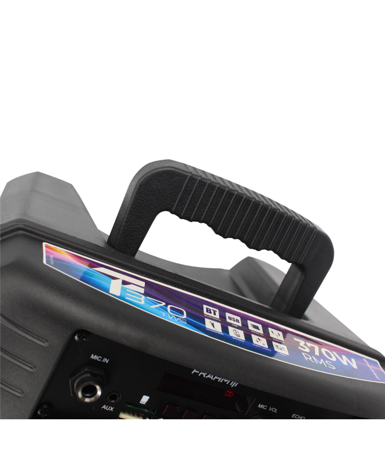 Apresentamos a TF 370 TWS: uma caixa compacta e potente com dois alto-falantes de 8 polegadas e 370W RMS. Ideal para uso diário e festas, ela se destaca em qualquer ambiente.
