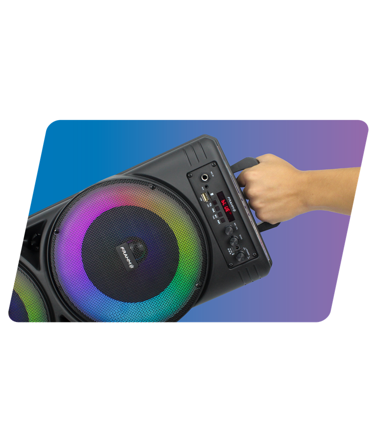 A alça proporciona facilidade de transporte, permitindo que a caixa de som seja facilmente movida de um lugar para outro, oferecendo praticidade e agilidade em qualquer ambiente.