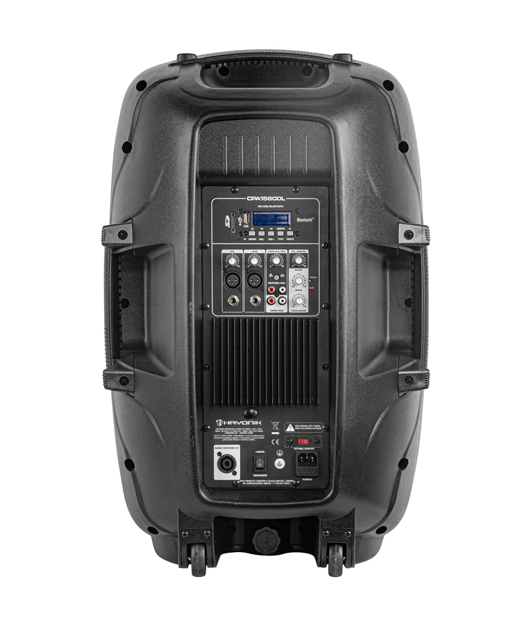 Modelo: CPA 15600L A Caixa Acústica Ativa Hayonik CPA 15600L foi projetada e desenvolvida em laboratórios equipados para te fornecer uma boa qualidade sonora além das conectividades que a Hayonik oferece para você, tais como, entrada de cartão de memória, USB, bluetooth e rádio FM além de 1 entrada de microfone e 1 entrada de linha XLR ou P10. Caixa com 600W de potência e alto-falante de 15"""". Especificações Cor: Preta Alto Falantes: 15'' Potência: 600W Amplificador: Classe AB Impedância: Saída amplificada: 8 Ohms Resposta Frequência: 50~20kHz Saídas: RCA, SPEAKON Dimensões: 48.000x39.000x76.000 cm Outros Informação adicional: Conexão de entrada: RCA, P10, XLR. Tensão de rede: 127VAC/220VAC (Chave seletora). Potência RMS: 4R - 300W 8R - 180W. Drive: Titanium 1.35"""". Relação sinal/ruído: 98dB±. Modo: USB, SD, Bluetooth, FM, Aux. Equalização: Volume, Grave, Agudo. Arquivos compatíveis: Mp3, WMA. Fusível: 3A. Itens Inclusos: 01 - Caixa de som acústica ativa CPA15600L Hayonik. 01 - Controle Remoto. 01 - Cabo AC padrão Brasileiro. 01 - Manual do usuário. Número de Homologação Anatel: 05407-18-11619 Garantia: 06 meses