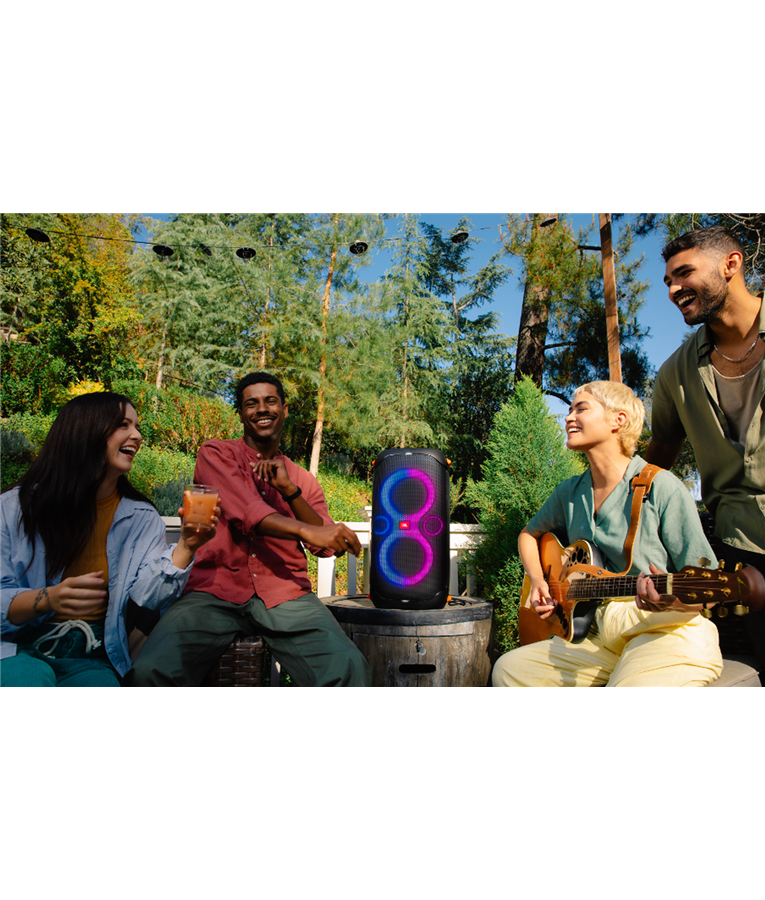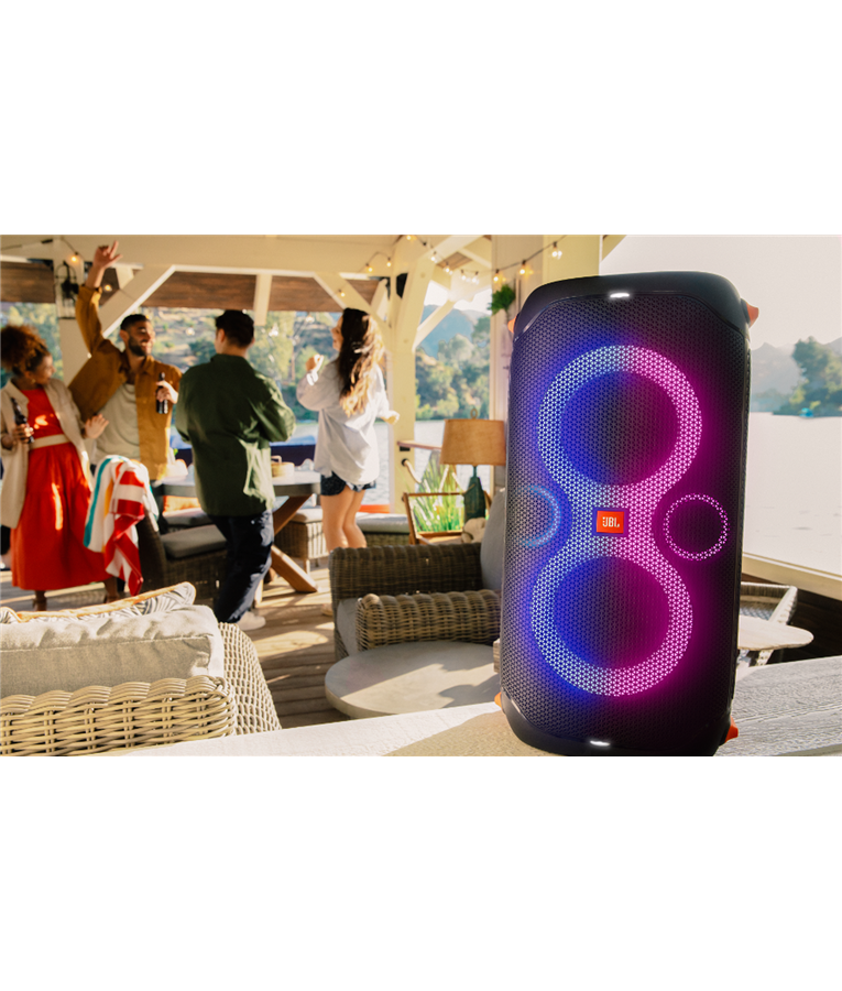 Comece uma festa com um som poderoso e um show de luzes dinâmico Leve uma dimensão totalmente nova para qualquer festa com as exclusivas luzes dinâmicas de LED, sincronizadas com o som poderoso e graves profundos da PartyBox 110. Leve a PartyBox aonde quer que você vá com o design à prova de respingos e conecte uma guitarra/violão e microfone para ter uma experiência imersiva definitiva. Com o Bass Boost e o potente som JBL Original Pro Sound, seus amigos não apenas ouvem a música, eles sentirão as 12 horas de reprodução mantendo a festa agitada o dia todo ou a noite toda. Use o aplicativo PartyBox para ter controle total enquanto transmite suas músicas sem fio. Especificações Gerais Potência de Saída (W RMS) 160 Especificações de Áudio Resposta de Frequência Dinâmica 45Hz - 20KHz (-6dB) Dimensões Dimensões (cm) 29.5 x 56.8 x 30.0 Peso (kg) 10.84 Especificações de Controle e Conexão Perfis bluetooth A2DP 1.3, AVRCP 1.6 Faixa de frequência do emissor bluetooth 2.4 GHz - 2.4835 GHz GFSK de modulação do emissor bluetooth GFSK, p/4 DQPSK, 8DPSK Potência de emissão de bluetooth = 15 dBm (EIRP) Versão do Bluetooth 5.1 Bateria Tempo de carregamento (hrs) 3.5 Tempo máximo de reprodução de música (hrs) 12 Características Show de luzes Sim Charging cable Sim À prova de respingos d?água Sim Bateria recarregável Sim Bluetooth Sim Qual o conteúdo da caixa? 1 JBL PartyBox 110 Cabo de energia CA (o plugue CA e a quantidade variam conforme a região) 1 guia de início rápido 1 certificado de segurança 1 cartão de garantia