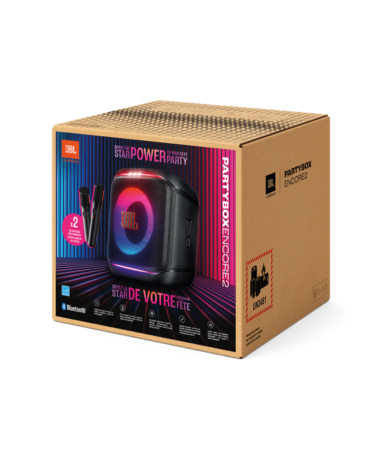 Ligue a JBL PartyBox Encore 2 e deixe a diversão começar. Com essa caixa de som portátil, você vai querer ser o DJ de todos os eventos, curtindo o som suave e potente do JBL Pro Sound, um show de luzes que acompanha o clima e um microfone para soltar a voz como mestre de cerimônias. Sinta aquele impacto no peito com agudos épicos e graves profundos, seja com uma nova balada pop ou um clássico romântico. Depois de ajustar o som, é hora de criar o clima com um show de luzes que dança no ritmo da sua batida. Pronto para comandar o show. Pegue o microfone digital sem fio e vire o mestre de cerimônias ou o anfitrião do karaokê! Personalize o som com controles de eco, graves e agudos para garantir que sua voz esteja perfeita. De coberturas abertas a porões lotados, a JBL PartyBox Encore 2 se adapta com facilidade, graças à alça prática para transporte e ao design à prova de respingos com certificação IPX4. E o que é melhor do que uma PartyBox Encore 2. Duas! Conecte duas caixas para um som estéreo de verdade ou sincronize com outras caixas compatíveis com JBL Auracast para uma festa ainda mais insana. Se 15 horas de música sem parar não forem suficientes, é só trocar a bateria recarregável para manter a vibe rolando. E com o app JBL PartyBox, você controla a playlist, adiciona efeitos sonoros divertidos e escolhe o show de luzes ideal ? tudo isso enquanto arrasa na pista de dança. Seja qual for a ocasião, a JBL PartyBox Encore 2 sabe como criar a vibe perfeita.