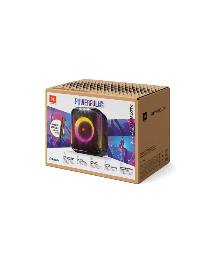 Especificações Gerais Potência de Saída (W RMS): 100 Especificações de Áudio Resposta de Frequência Dinâmica: 50 Hz - 20k Hz @-6dB Dimensões Dimensções (in) 10.87 x 12.87 x 11.54 Dimensões (cm) 27.6 x 32.7 x 29.3 Peso (kg) 6.3 Especificações de Controle e Conexão Perfis bluetooth A2DP 1.3, AVRCP 1.6 Faixa de frequência do emissor bluetooth 2.4 GHz - 2.4835 GHz GFSK de modulação do emissor bluetooth GFSK, p/4 DQPSK, 8DPSK Potência de emissão de bluetooth < 9 dBm (EIRP) Versão do Bluetooth 5.1 Bateria Tempo de carregamento (hrs) 3.5 Tempo máximo de reprodução de música (hrs) 10 Características Show de luzes Sim Charging cable Sim À prova de respingos d?água Sim Bateria recarregável Sim Bluetooth Sim Qual o conteúdo da caixa? 1 x JBL PartyBox Encore Cabo de energia AC (o plugue AC e a quantidade variam conforme a região) 1 guia de início rápido 1 x certificado de segurança 2 x microfones sem fio JBL