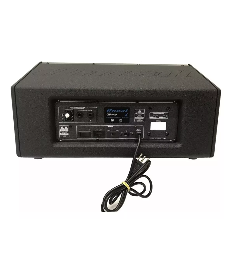 DECRIÇAO GERAL: Desenvolvido para oferecer a melhor imagem sonora, o OPMV-1412X-PT é um retorno de palco profissional com os mais atualizados recursos tecnológicos do mercado. A caixa de som foi projetada com o intuito de oferecer um som totalmente limpo e uma entrega real de sua potência a seus ouvintes. Para isso, foi construída com um alto-falante de 12 polegadas que contém 120wrms real e com uma estrutura em MDF, com suas litragens milimetricamente bem distribuídas para usufruir toda a qualidade existente de seus componentes. O retorno conta com 2 entradas Line com Jacks P10 1/4? com controle de volume; 1 saída com conector Jack P10 1/4? para ligar uma caixa acústica passiva 8 Ohms; proteção contra curto na saída (SCP - Short Circuit Protection), também conta com a função limiter (CLP - Clip Limiter Protection) que protege o aparelho de qualquer excesso de sinal que ele receber, o mesmo atuará instantaneamente, com o attack muito rápido. Este sistema de limitação não ceifa nenhuma frequência, nem dá a sensação de comprimir o som, problema comum nos limiters que se encontram no mercado. Especificações Técnicas: ? Marca: Oneal ? Modelo: 1412X-PT ? Cor: Preto ? Tamanho do falante: 12 Polegadas ? Potência RMS: 120 W ? Tensão de Rede: 127/220v (Chave seletora) ? dB SPL MÁX. Contínuo - Campo Livre 106dB ? dB SPL MÁX. Contínuo - Plano ao Terra 112dB ? dB SPL MÁX. Pico - Campo Livre 118dB ? dB SPL MÁX. Pico - Plano ao Terra 124dB ? Alto falantes de 12?, 1 Driver de Titânio ? Resposta de frequência (75Hz à 18KHz) ? Ângulo de cobertura Corneta (60H x 60V) ? Controle de volume: Sim ? Entrada Paralela de Sinal P10: Sim ? Circuito Clip Limiter Inteligente (CLP): Sim ? Sistema Auto Ramp de Acionamento (ARP): Sim ? Proteção Contra Curto (SCP): Sim ? Proteção Térmica Eletrônica (ETP): Sim ? Sistema de Ventilação Inteligente (ICS) / Turbo Ventilada: Sim ? Alça Lateral para Transporte: Sim ? Consumo Máximo - W - Senoidal 174W ? Consumo Máximo - W - Pink Noise 87W