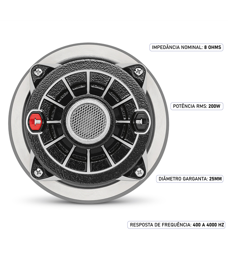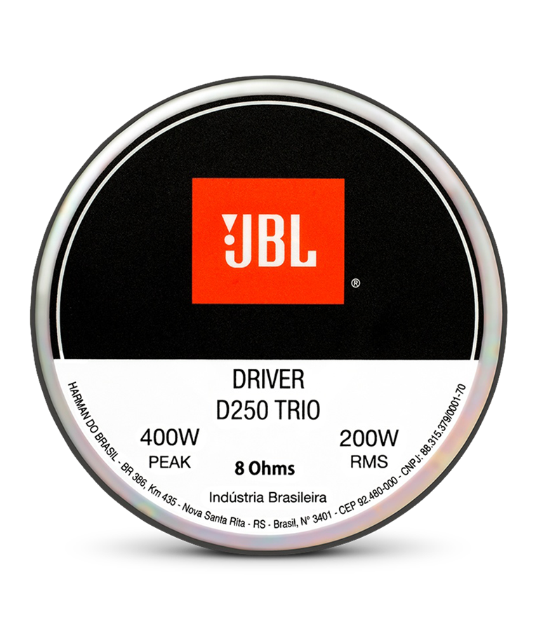 A linha de drivers TRIO da JBL oferece compressão com alta sensibilidade, durabilidade, baixa distorção e resposta suave, com diafragma fenólico formado com precisão produz som de alta fidelidade ao longo da faixa média. Além do plugue de fase, um transformar acústico que minimiza o cancelamento de fases. É a escolha ideal para aplicações de faixa média.