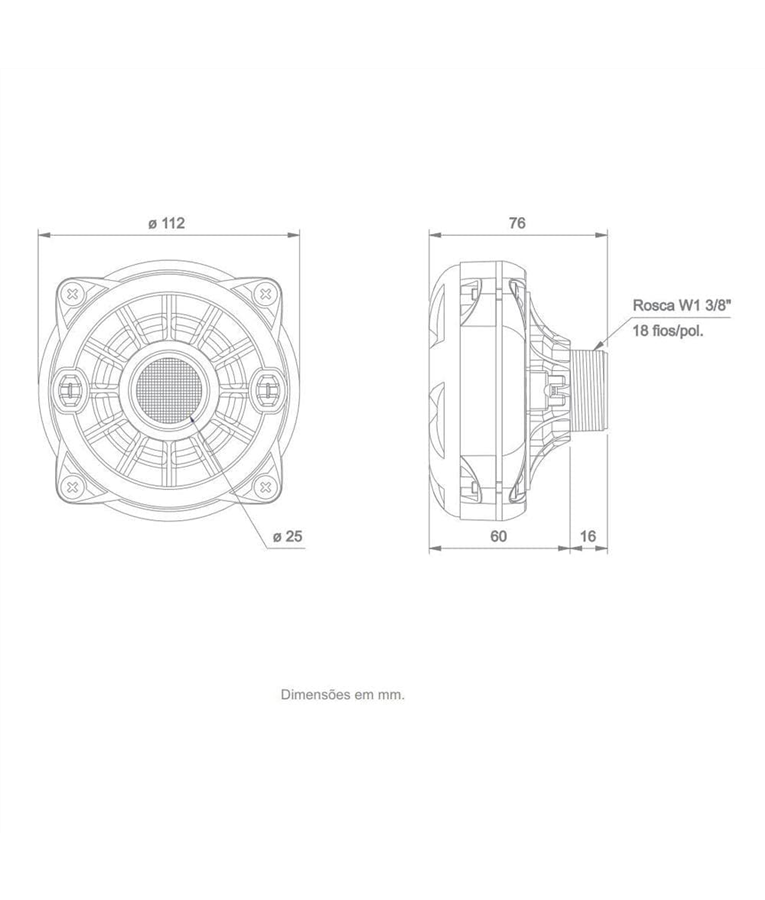 ? Sensibilidade em corneta, 2,83V@1m, no eixo: 107 dB SPL