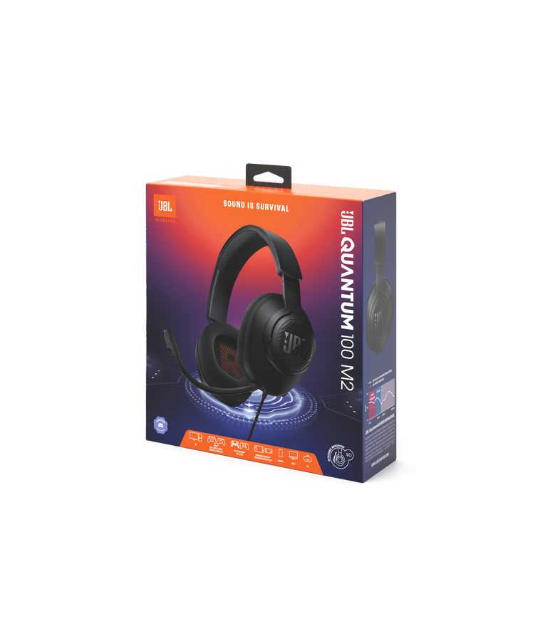 Transforme seu jogo em um evento épico. Com o exclusivo JBL QuantumSOUND, o fone de ouvido JBL Quantum 100M2 coloca você no centro da ação. Domine o jogo com o som preciso e envolvente que permite escutar os detalhes mais sutis e sentir cada explosão, um microfone boom removível com foco na voz para comunicações mais claras e almofadas auriculares leves feitas com tecido respirável e espuma de memória para mais conforto e sessões prolongadas. O microfone boom destacável permite interações claras com vários jogadores. Além disso, este fone de ouvido é compatível com todas as plataformas! Transforme sua experiência de jogo com o fone de ouvido JBL Quantum 100M2.