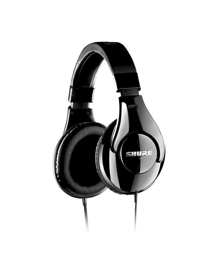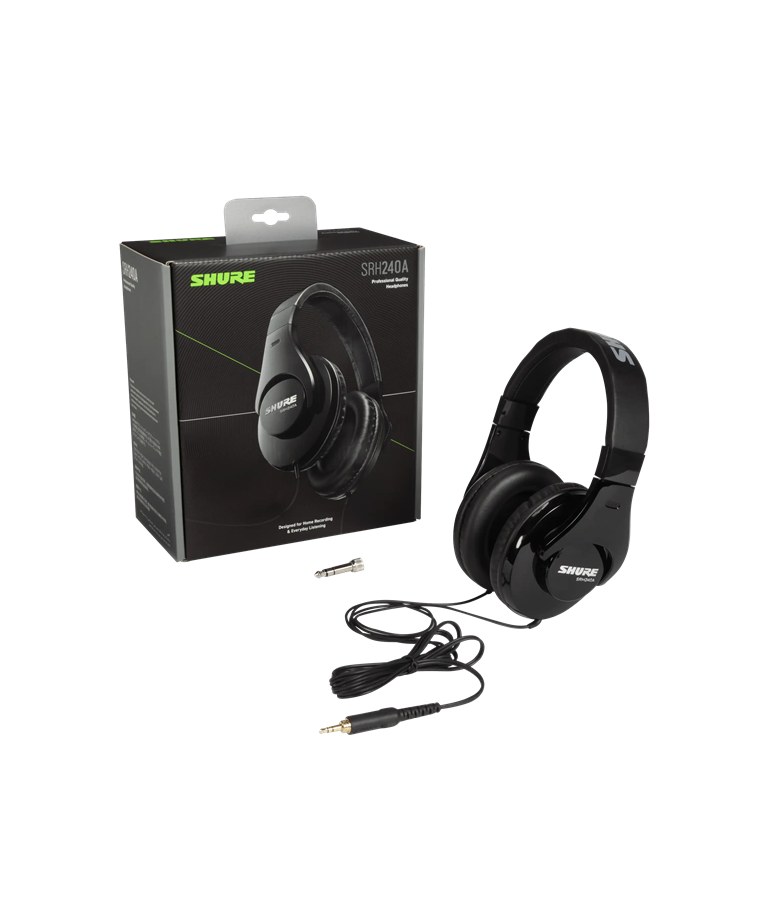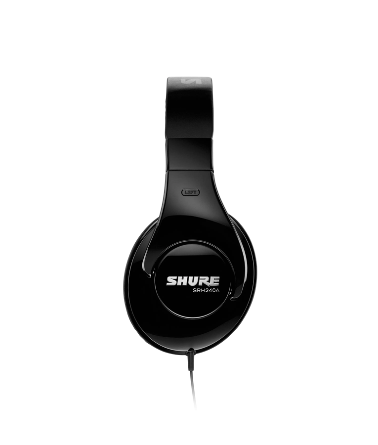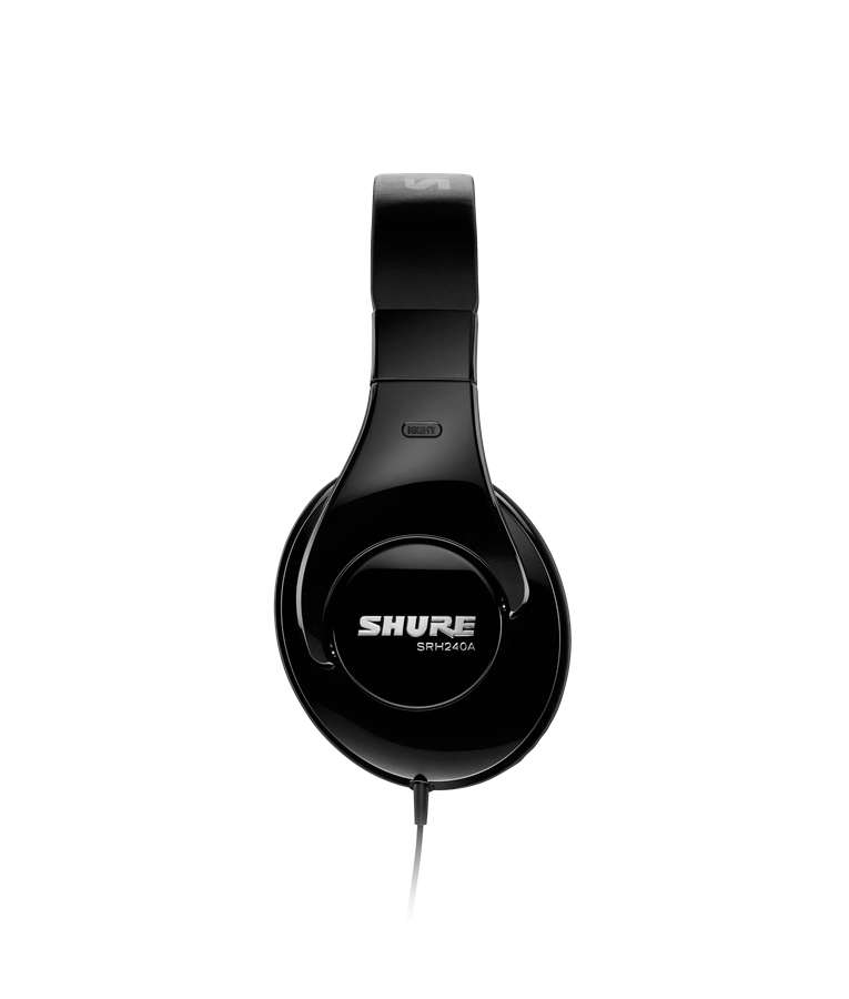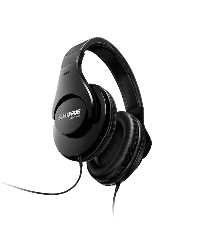O fone de ouvido SRH240A Shure proporciona reprodução de áudio precisa e extremo conforto.