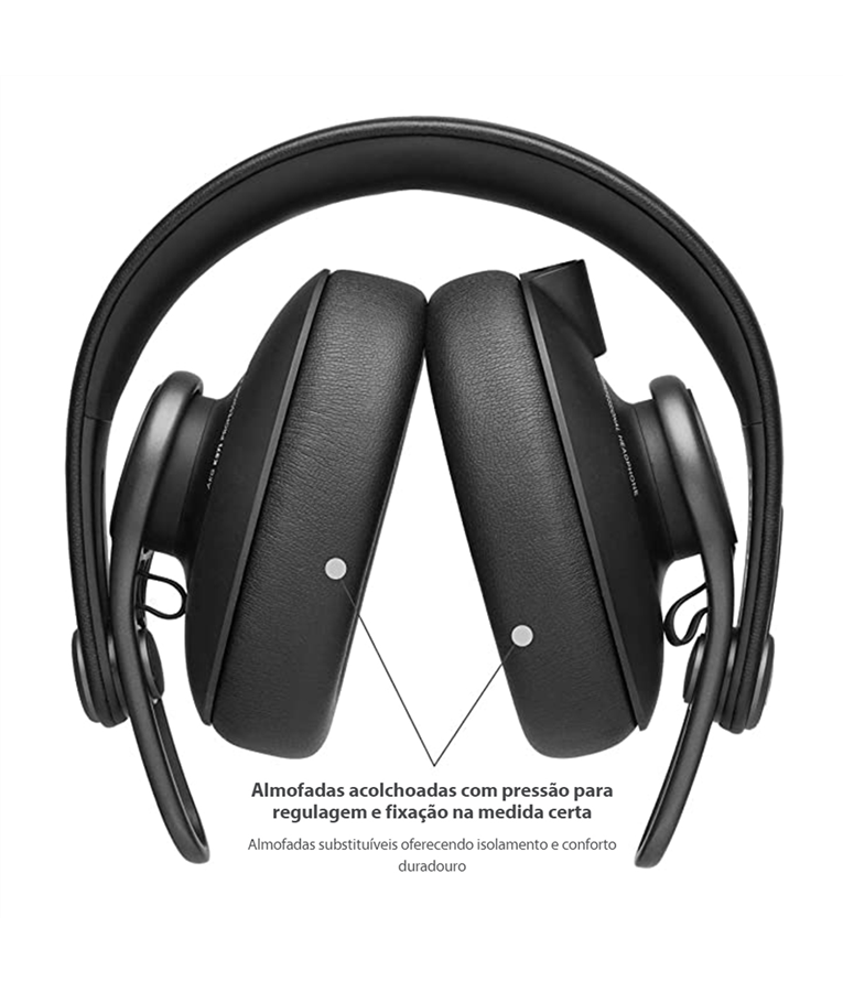 Design circum-auricular oval fechado oferece isolamento superior, melhor resposta de baixa frequência, ajuste ergonômico