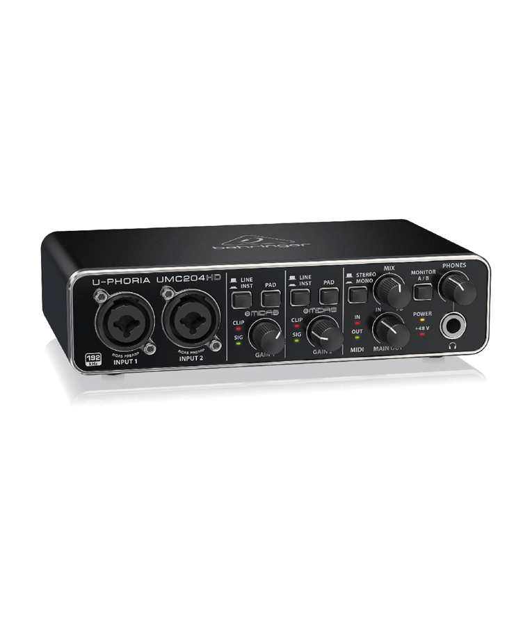 O incrível U-PHORIA UMC204HD preenche a lacuna entre sua criatividade e seus fãs. Este estúdio USB 2.0 incrivelmente rápido em uma caixa fará com que você grave sua próxima obra-prima em minutos com toda a conectividade necessária para seus microfones, guitarras, teclados e até dispositivos MIDI.