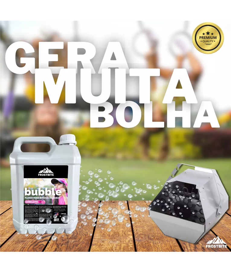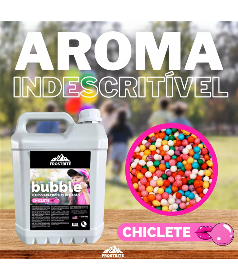 Do que se trata o Fluido para Máquina de Bolhas de Sabão? O Fluido para Máquina de Bolhas de Sabão é um líquido especializado que, quando utilizado em máquinas de bolhas, cria bolhas de sabão duradouras e brilhantes. Este produto é essencial para produzir bolhas de sabão de maneira eficiente e eficaz, sendo ideal para eventos, festas e outras celebrações onde as bolhas de sabão adicionam um toque mágico e encantador ao ambiente. Aplicações do Fluido para Máquina de Bolhas de Sabão: Produção de bolhas para eventos Decoração de festas Ambientes de entretenimento Produção de efeitos visuais Atividades recreativas ao ar livre O Fluido para Máquina de Bolhas de Sabão da Frostbite: O Fluido da Frostbite é uma escolha superior no mercado devido à sua fórmula exclusiva que garante bolhas mais resistentes e brilhantes. Este produto é conhecido por sua consistência e capacidade de criar bolhas que encantam e fascinam. Além disso, o Fluido Frostbite é seguro, não tóxico e ambientalmente amigável, sendo a opção ideal para quem busca um produto confiável e de alta qualidade. O Fluido Frostbite é destinado para uso profissional, garantindo uma experiência de bolhas de sabão inigualável, que transformará qualquer evento em um momento mágico e inesquecível. Um dos destaques do Fluido para Máquina de Bolhas de Sabão da Frostbite é o seu delicioso aroma de chicletes, que adiciona uma camada extra de encanto e diversão às suas bolhas. Este aroma doce e nostálgico cria uma atmosfera alegre e divertida, tornando cada bolha não apenas um deleite visual, mas também olfativo, encantando ainda mais os presentes no evento.