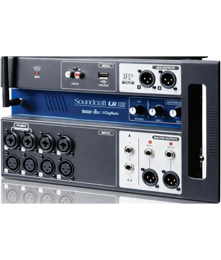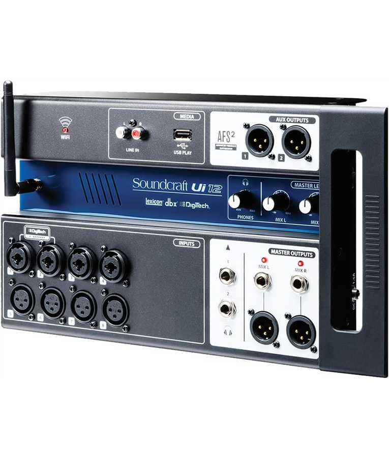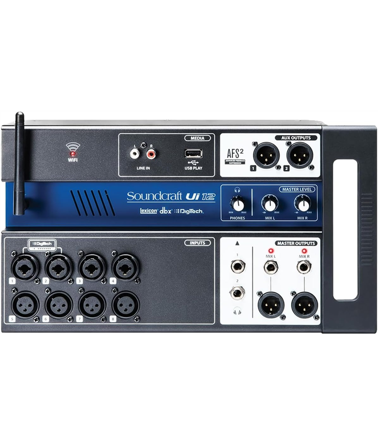 O mixers da série Ui apresenta plataforma de compatibilidade com dispositivos iOS, Android, Windows, Mac OS e Linux, onde até 10 dispositivos de controle simultaneamente podem ser utilizados. Além disso, a Ui12 possui processamento de sinal integrado HARMAN da dbx, DigiTech e Lexicon, incluindo dbx AFS2, DigiTech Amp Modeling e muito mais. Ambos os modelos apresentam ganho e phantom power totalmente recuperáveis e controlados remotamente, junto com EQ paramétrico de 4 bandas, high-pass-filter, compressor, de-esser e noise gate nos canais de entrada. Ambos os mixers oferecem EQ gráfico de 31 bandas, porta e noise gate em todas as saídas, além de analisador de frequência em tempo real (RTA) nas entradas e saídas. Estão integradas 3 Mandadas dedicadas de Efeitos Lexicon : Reverb, Delay e Chorus. Além disso, os controles do mixer incluem subgrupos, grupos de mute e grupos de exibição, entre outros.
