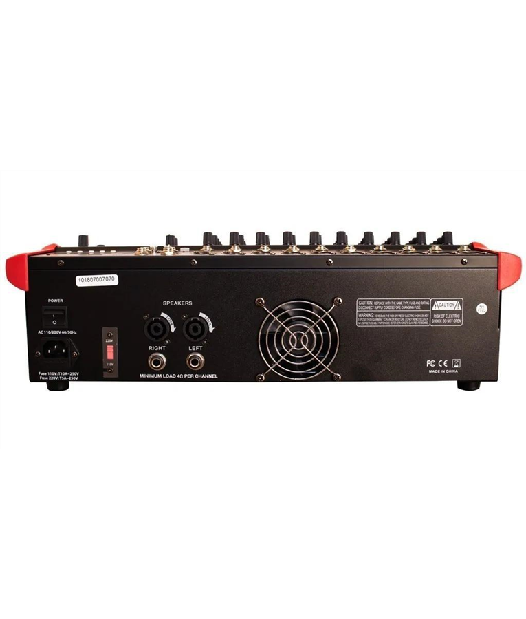 Mesa de som de 10 canais mono com entradas balanceadas XLR e de linha P10 e 500W de potência total.