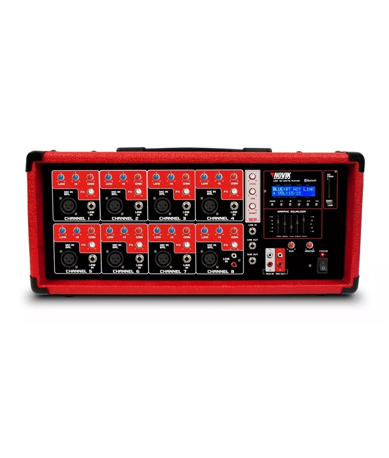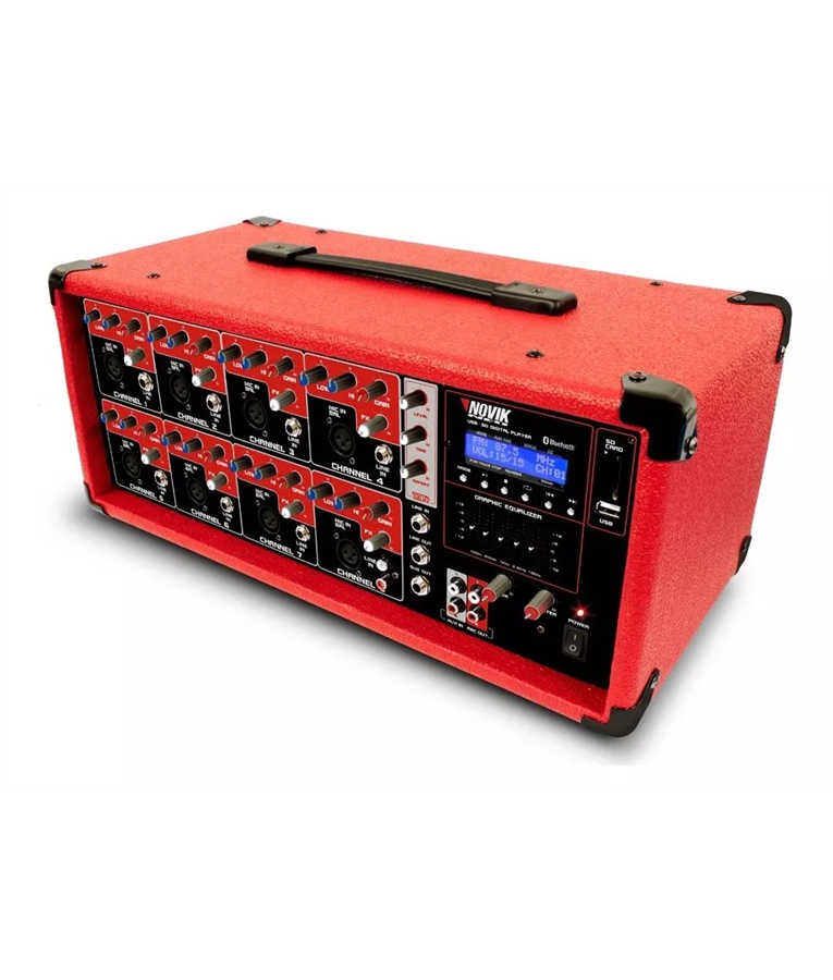 A mesa de som amplificada 8 Canais Novik Neo NVK 8500BT foi desenvolvido para qualquer uso com uma construção durável e firme, pronto para trabalhar com pré-amplificadores ultra silenciosos. Vem com MP3 Player, Bluetooth, Entradas USB e Entrada para Cartão SD. Delay Digital em cada canal. É perfeito para reforçar o som em qualquer lugar.