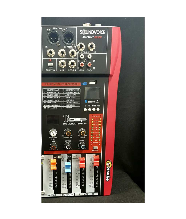 Mesa de Som Soundvoice MR162 RUBI Interface Bluetooth 16 Canais