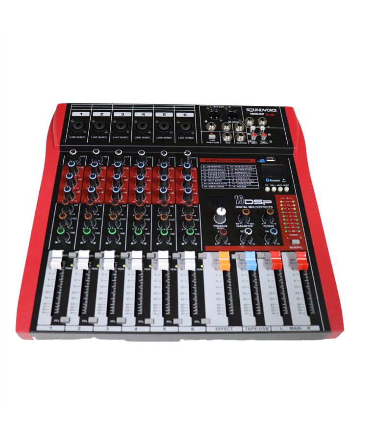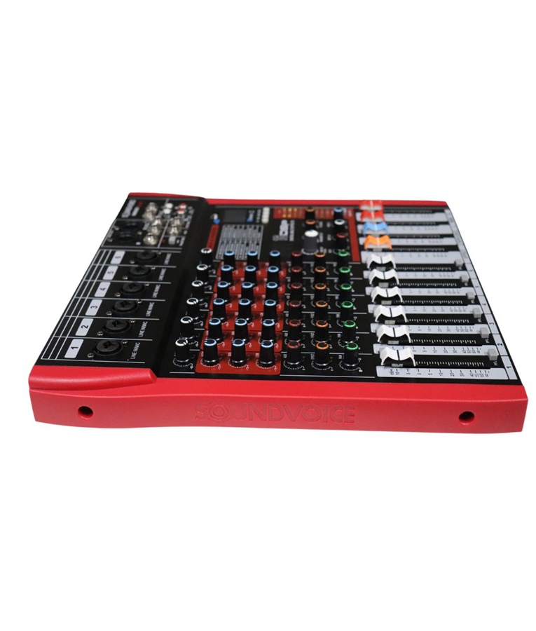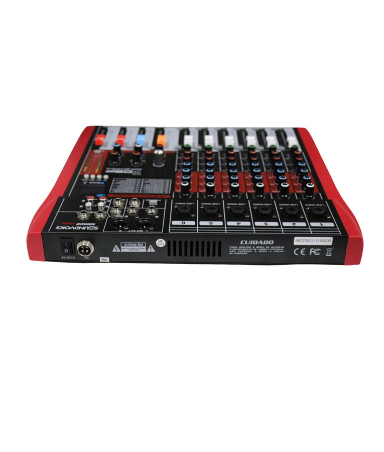 A Mesa de Som Analógica SoundVoice MR602 RUBI é um equipamento de áudio projetado para mixagem e controle de algumas em diversas aplicações, como apresentações ao vivo, estúdios de gravação, ensaios musicais e eventos em geral. Com seus 6 canais e adição da funcionalidade Bluetooth, essa mesa oferece uma variedade de recursos que atendem às necessidades de músicos, técnicos de som e entusiastas de áudio. A mesa de som possui 6 canais, o que permite conectar diferentes fontes de áudio, como microfones, instrumentos musicais, reprodutores de música, entre outros.