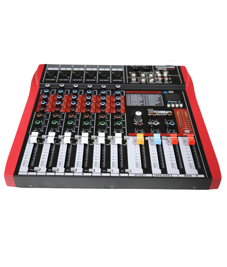 6 canais combo com entradas balanceadas XLR e de linha P-10;