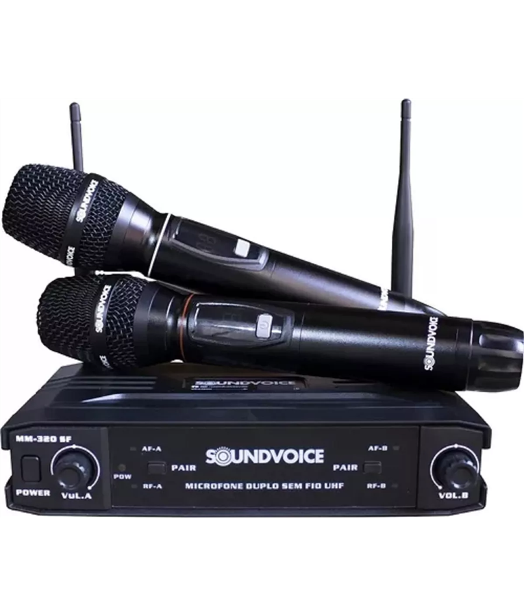 Kit Microfone Duplo sem Fio Soundvoice MM-320 SF UHF