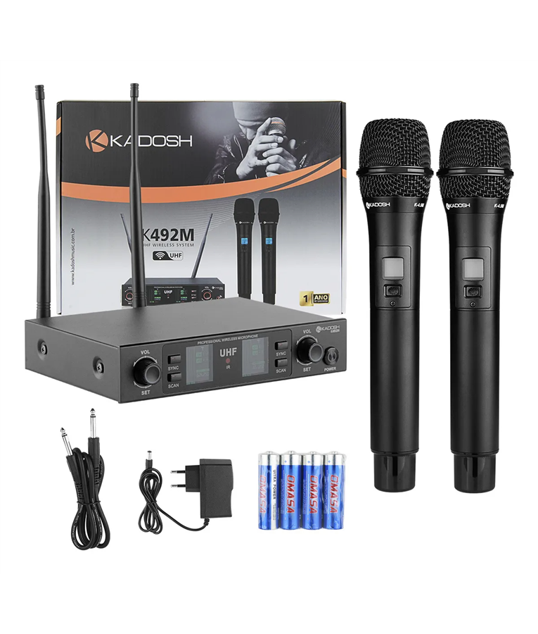 MICROFONE DUPLO SEM FIO KADOSH K-492M