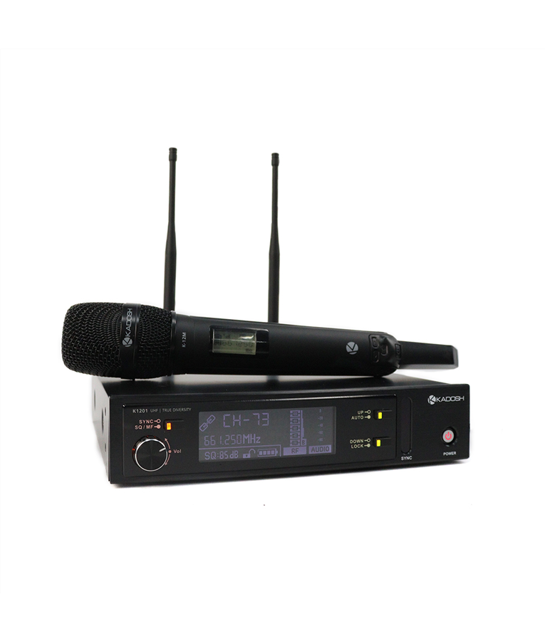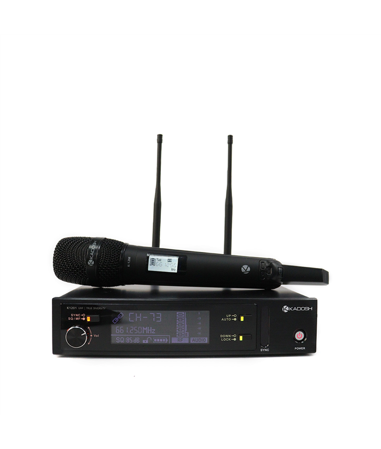 MICROFONE KADOSH S/FIO K-1201M SUGESTÃO DE USO: Vocais ao vivo (shows e igrejas), palestras Um dos pontos que diferencia o K1201 e K1202 é o compartimento de pilhas, sem dúvida o ápice da praticidade! Basta pressionar os botões laterais e pronto, a gaveta de pilhas está liberada. Você pode ter 1 gaveta reserva (adquirir de forma avulsa) dessa forma o processo de trocar as pilhas durante o espectáculo será mais fácil. CARACTERÍSTICAS E ESPECIFICAÇÕES: Range de Frequência: 470MHz a 510MHz ou 513MHz - 558MHz ou 628MHz - 647.750MHz Resposta de frequência: 63Hz - 12.000Hz Sincronização rápida através de IR Sistema PLL de 38Khz Relação sinal x ruído: >105dB Sensibilidade: -105dB Distorção Harmônica (T.H.D): <0.5% Cápsula Kadosh K-12M - Dinâmico / padrão polar: supercardióide Saída de audio: XLR e TS Conexão Antenas: BNC 50 Ohms Garantia: 1 Ano