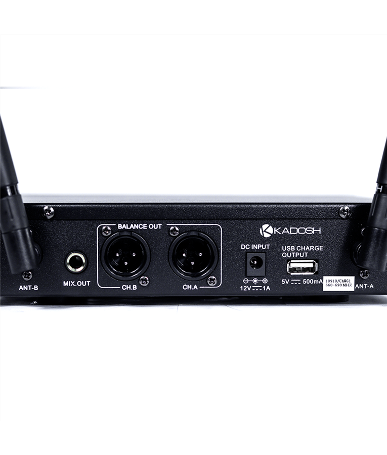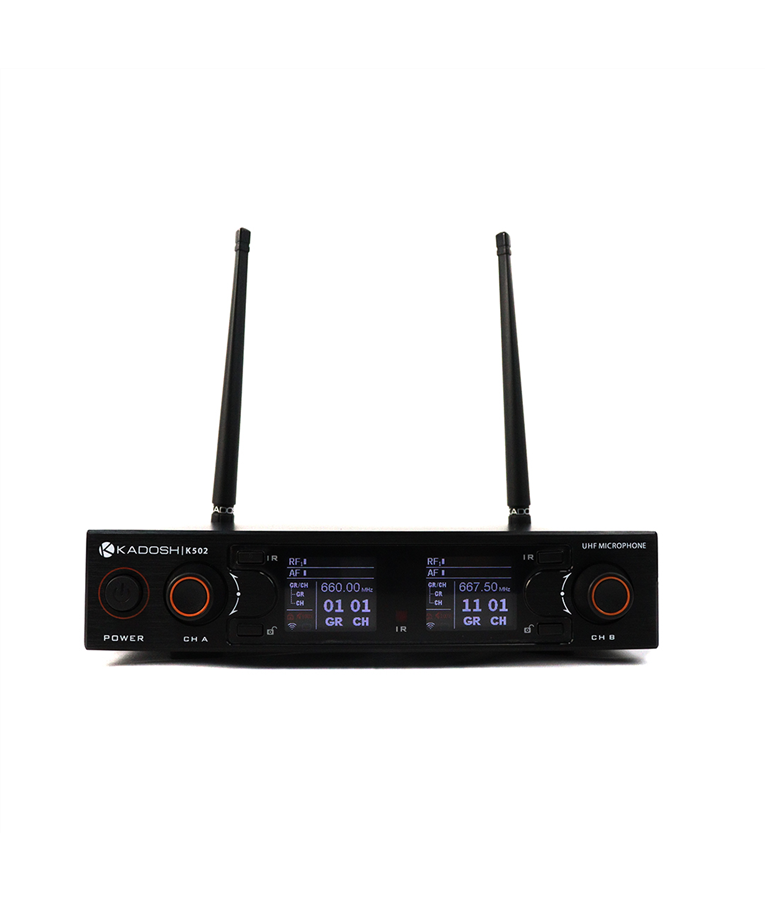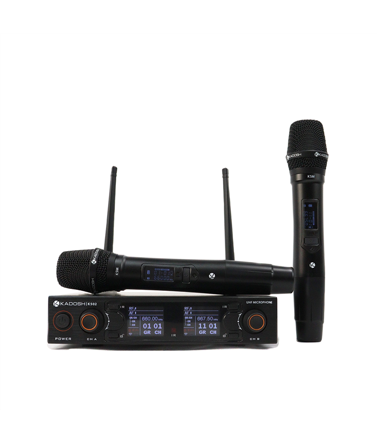 PEQUENO, LEVE E CONFORTÁVEL O Handheld K5m é extremamente confortável, graças aos seus 260g (já com a pilha). Feito em metal, pintura eletrostática e com acabamento em verniz fosco. No corpo do transmissor de mão você tem um display em OLED e botão com funções On / Mute / Off. RF O K502 possui 100 frequências por canal, sendo administradas de forma que determinada frequência seja usada apenas por um canal, PLL - Phase Locked Loop, escaneamento de frequência, sync por IR (impulse response), conexão de antenas BNC. Possui 2 range de frequência, 660.000 MHz - 689.700MHz | 560.000MHz - 589.700MHz, dando a você possibilidade de usar outros sistemas no mesmo ambiente e em qualquer local. PILHAS QUE DURAM MUITO O K502 possui handheld K5m que são alimentadas através de pilha recarregável de lithium 3.7V de alta qualidade e padrão Kadosh. Você poderá recarregar rapidamente (3h = 80%) através de cabo USB-C ou através de carregador externo (vendido separadamente). Range de Frequência: 560.000MHz - 589.700MHz ou 660.000MHz - 689.700MHz Modulação: UHF Padrão Polar: Cardióide Sistema PLL (Phase Locked Loop) Antena omnidirecional ¼ Comprimento de onda com conexão fixa Display OLED com indicação de nível de AF, RF, carga das pilhas, MUTE e LOCK automático Resposta de Frequência: 80Hz - 14.000Hz ± 2dB Duplo Microfone de Mão (Handheld) Saída de áudio: XLR e TS Potência de saída: 10mW Largura de banda: 50MHz Conexão Antenas: BNC 50 Ohms Pilha de Líthium 3.7v recarregável na própria base através de cabo mini USB Garantia: 1 Ano